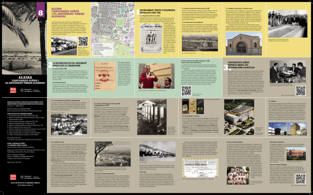 El cas de Cartonages Suñer d’Alzira ens permet analitzar l’evolució de les relacions laborals i les formes d’acció col·lectiva al llarg de més de sis dècades, des del model paternalista-autoritari de la que va ser declarada per Franco “empresa exemplar”, fins a les successives crisis i la seua adquisició final per una multinacional, posant de manifest com en cada etapa el sindicalisme de classe -dinamitzat per dirigents com José González Azorín, Salvador Corts, Antonio Casterà, Juan Antón Mora, Salvador Piera o Soledad Garés- va saber definir, no sense dificultats, l’estratègia més adequada per a la defensa i promoció de les reivindicacions dels seus treballadors.