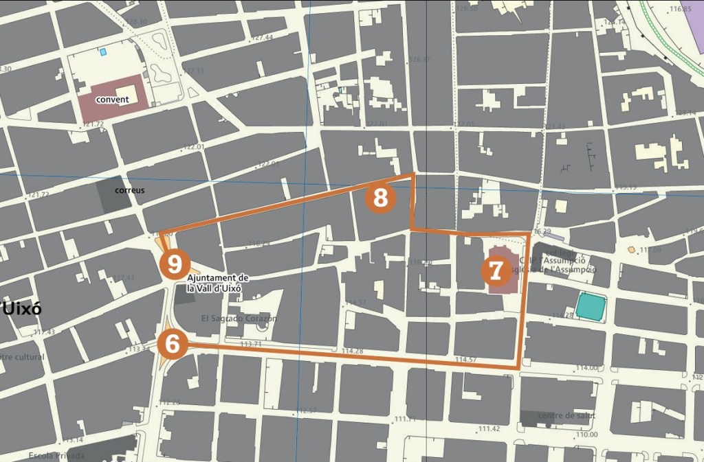 6 Plaça de la Pau / 7 Església de l’Assumpció / 8 Carrer García Esbrí / 9 Ajuntament